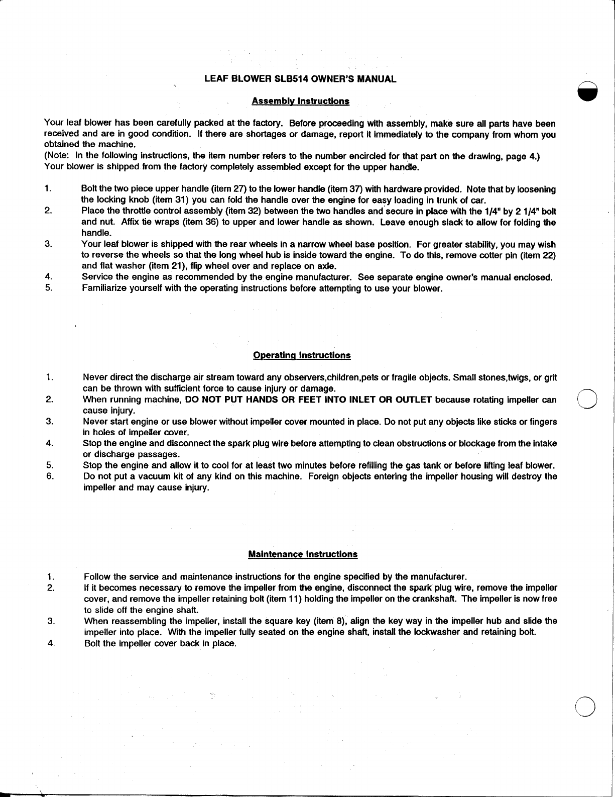Snapper SLB514 Manuale Utente Pagina 2